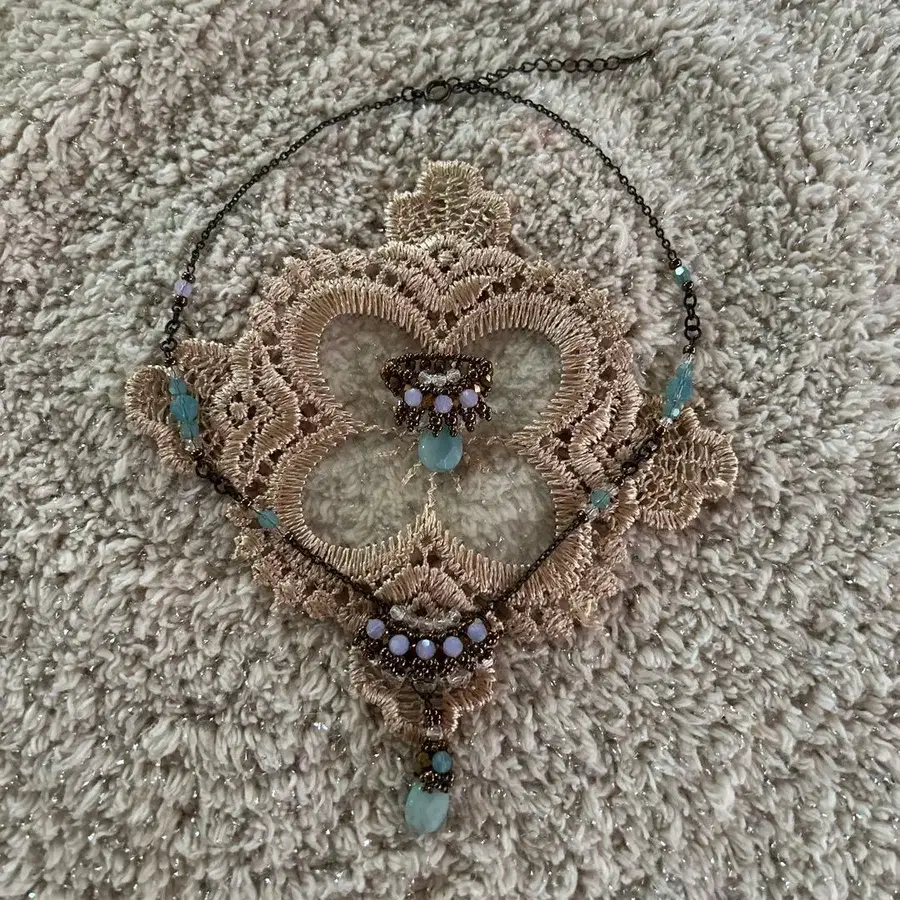 비즈 목걸이 스카이블루 보라색