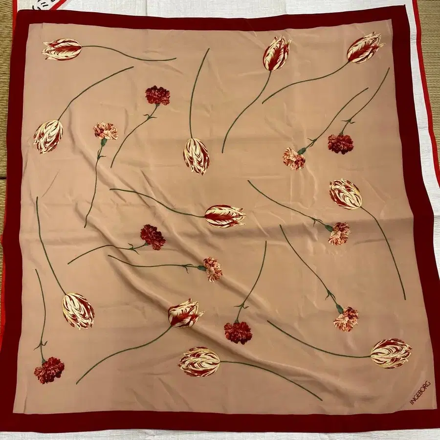6759 INGEBORG 튤립 카네이션 대형 스카프 레트로