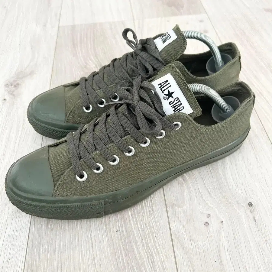 자동 번역되었어요. 원문보기올리브 그린 캔버스 소재, 러버 솔의 로우컷 스니커즈.