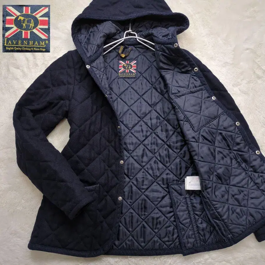 컨디션 최상 라벤햄 퀼팅 자켓 로고 택 후드 네이비 38