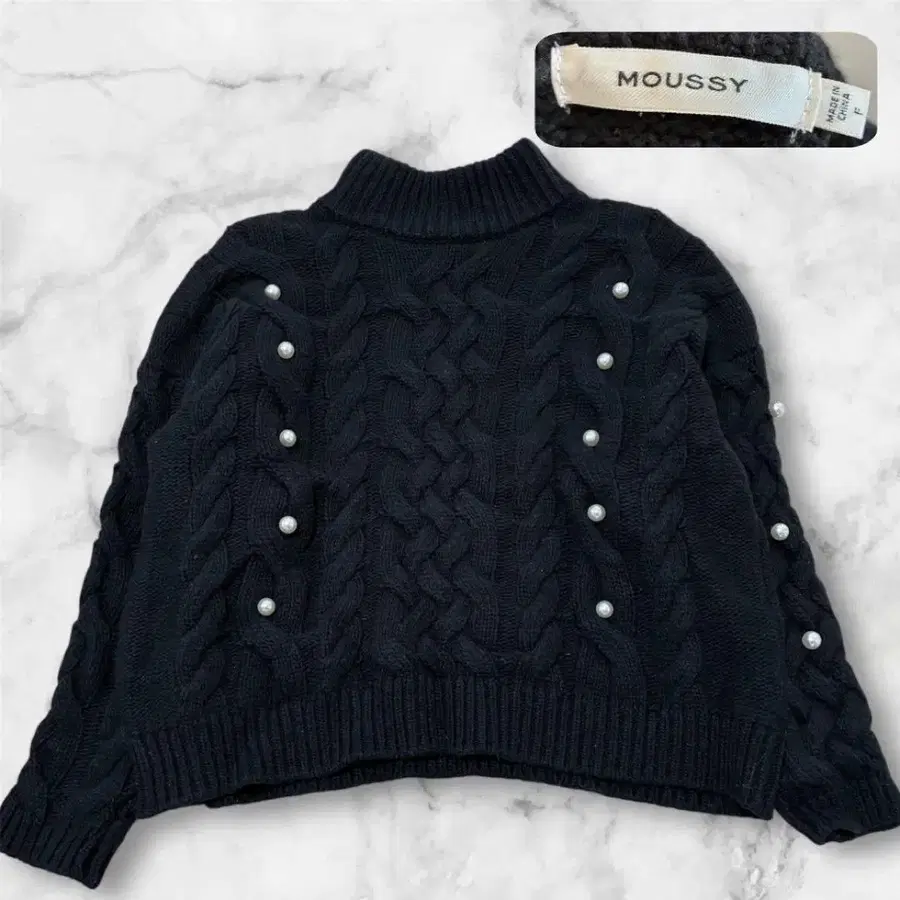 마우지 MOUSSY 니트 스웨터 케이블 니트 두꺼운 케이블 블랙 블랙 프리 사이즈 여성용 상의 넉넉한 오버 사이즈 가을/겨울 심플