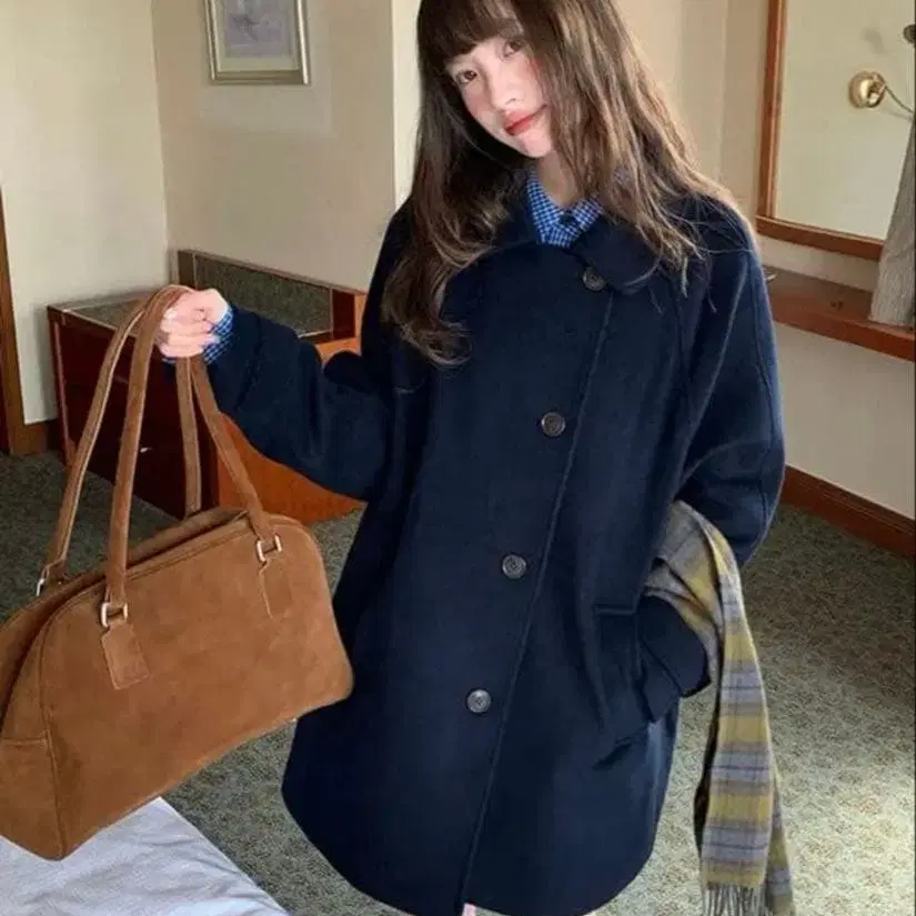 LUMIYUMI 울 블렌드 접이식 옷깃 미들 코트 M 사이즈