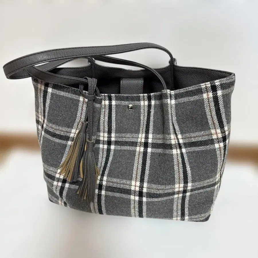 리버서블 (그레이 체크 무늬 + 그레이) 토트백 태슬 포함