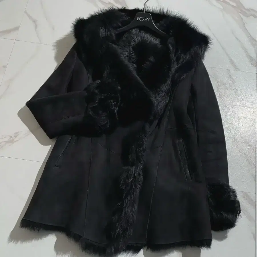 자동 번역되었어요. 원문보기최고급 ✨ 토스카나 무스탕 코트 후드 부착 리얼 무스탕 양가죽 블랙 L