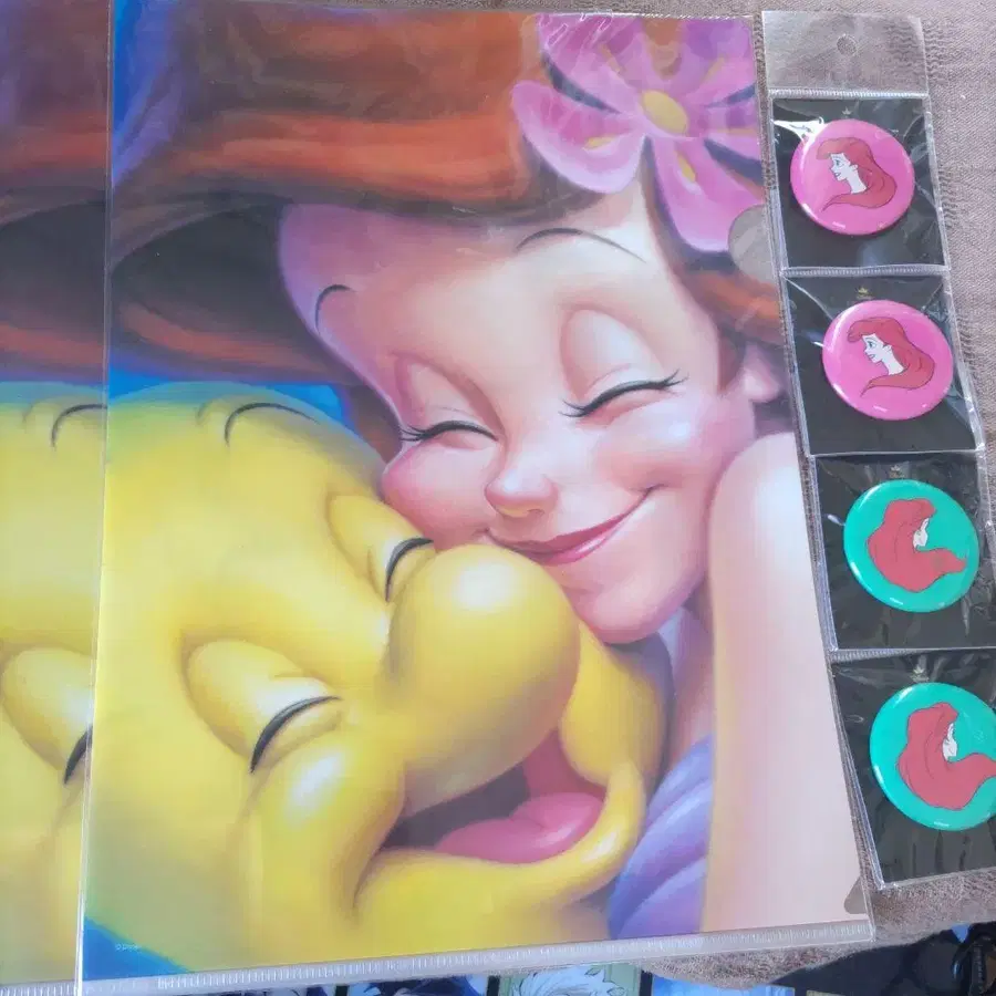 디즈니 아리엘 플라운더 클리어 파일 캔뱃지 묶음 판매