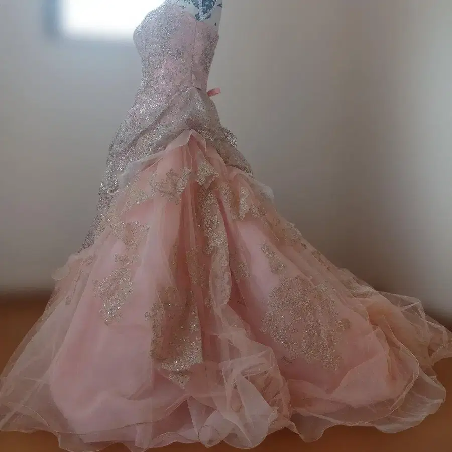 핑크 스트랩리스 웨딩 드레스