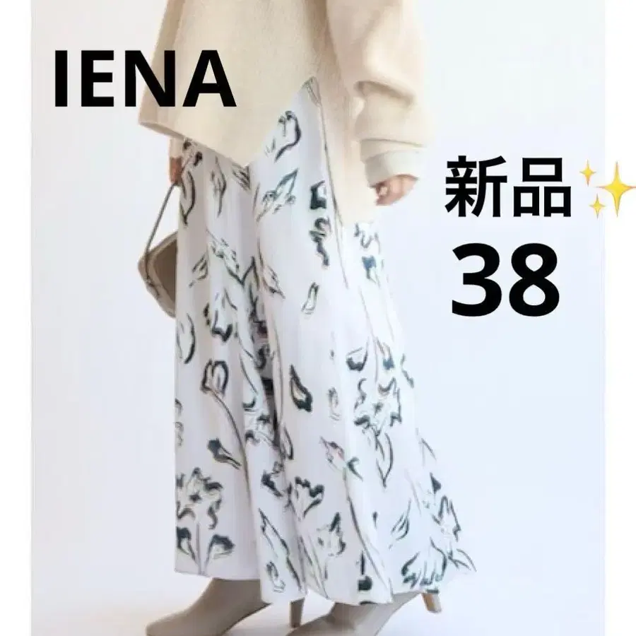 새상품 IENA 플라워 프린트 플레어 스커트 그레이 38