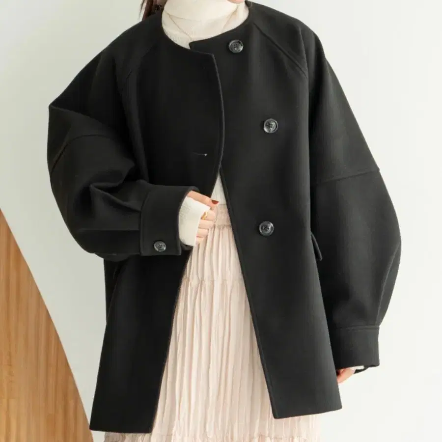 택 포함 새상품 hinari 마루 웨이브 디자인 미들 코트 블랙 F