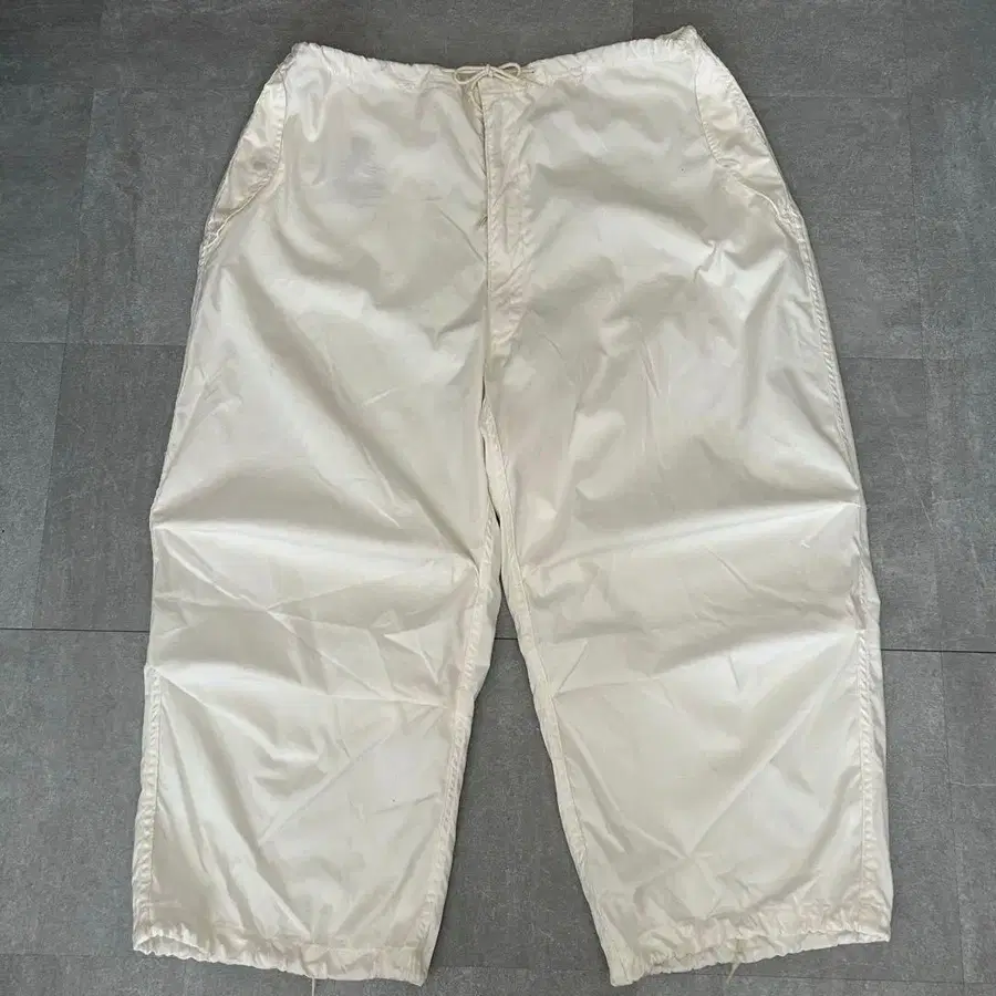 color natural white 90's US Army 스노우 카모 팬츠 설산에 숨기 위한 오버 팬츠입니다. 매우 레어한 사이즈 M-Short입니다. 게다가 얼룩 등도 거의 없습니다. 팬츠 위에 덧입는 용도로, 사이드 포켓은 안에 입고 있는 팬츠의 포켓으로 접근하기 위해 관통되어 있습니다. 백 포켓은 평소대로 사용할 수 있습니다. 스노우 카모 팬츠는 연대 등에 따라 원단 소재 구성이 다르며, 90년대의 65% 코튼(면), 35% 나일론 소재는 절묘한 질감이 있어 구제 의류 매니아 사이에서도 특히 인기가 있다고 합니다. 최근 몇 년간 혼다 츠바사 씨도 착용했던 적이 있어 가격이 폭등하고 있습니다. 다가오는 시기, 본래의 용도인 팬츠 위에 덧입는 것도 좋다고 생각하며, 조금 더 먼 미래의 이야기지만 여름에도 입을 수 있습니다. 넉넉해서 바람도 잘 통하고, 이 아주 넉넉한 실루엣의 밑단도 코드로 꽉 조여 입는 것을 추천합니다. size M-short ※ 덧입는 용도이기 때문에 빅 사이즈로 제작되었습니다.