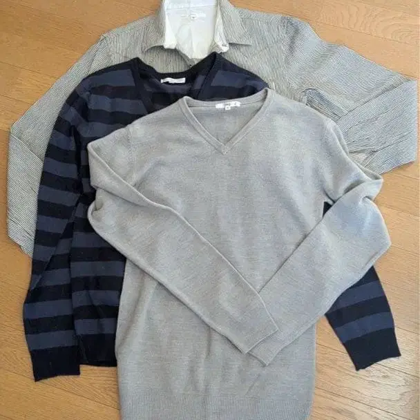 IMP V넥 니트 그레이 네이비 M