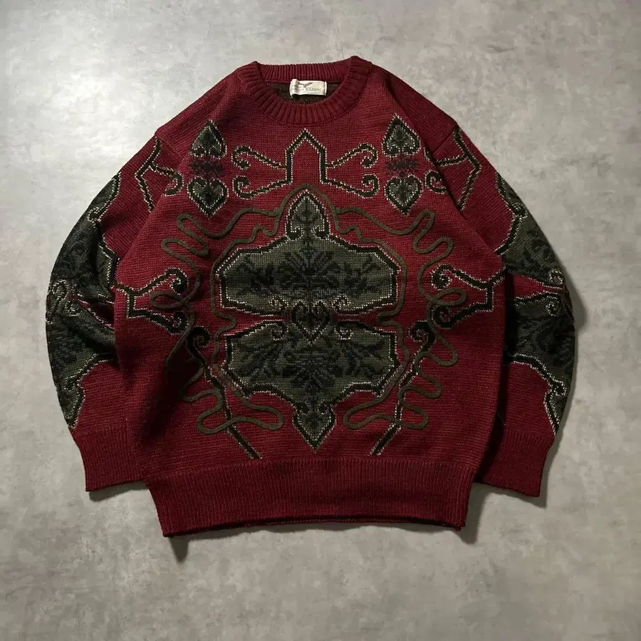 • 빈티지 올 패턴 기하학 무늬 레트로 디자인 니트 스웨터