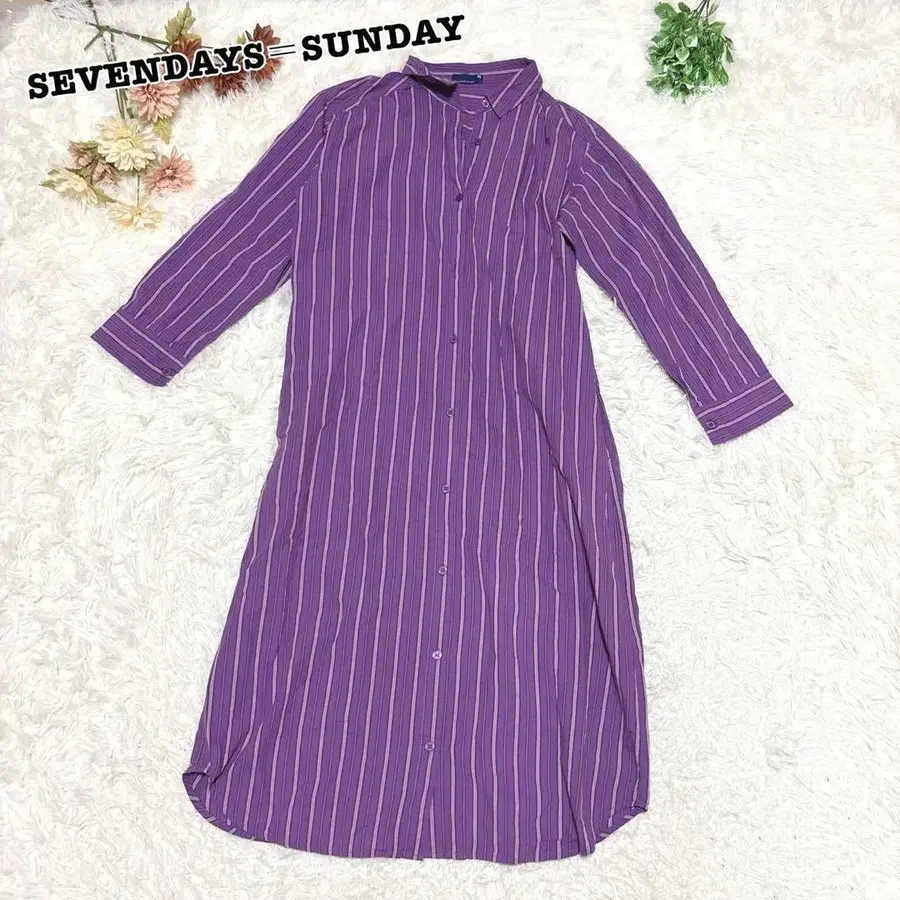 s.1806 [세븐데이즈선데이] 긴팔 셔츠 롱 원피스 스트라이프
