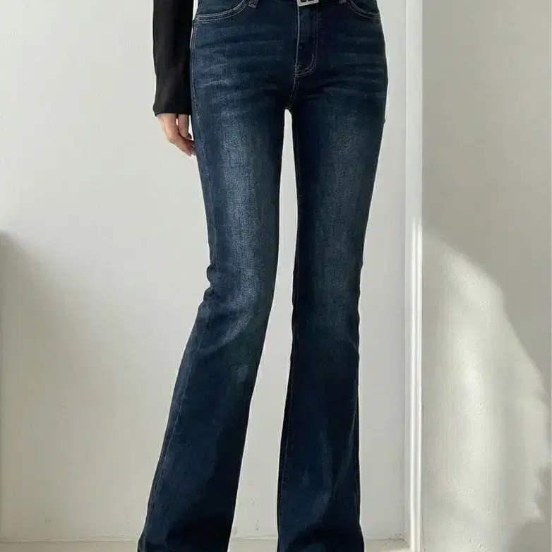 SUTORE 슬림 라인 벨트 플레어 데님