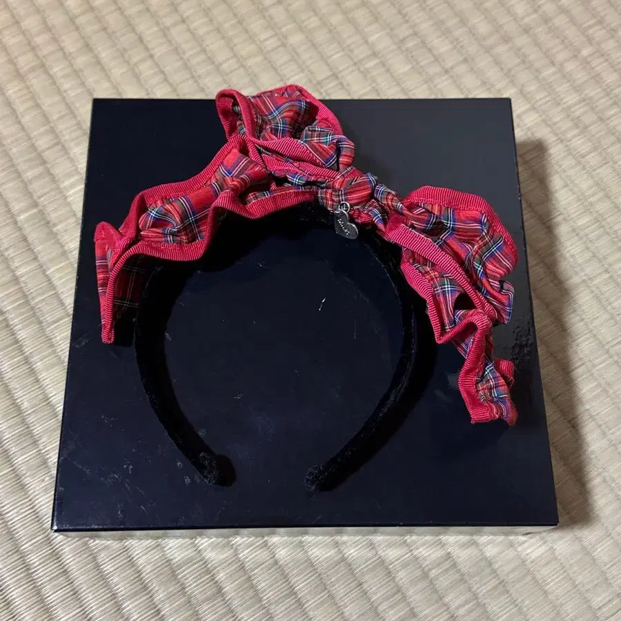 MILK 빨간색 체크 무늬 프릴 리본 머리띠