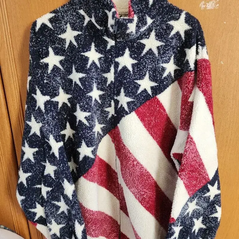 미국 국기 디자인의 플리스 자켓, 3X 사이즈, 따뜻하고 쾌적합니다. 눈에 띄는 얼룩 등은 없으며, 상태 좋습니다. Made in USA 밑단은 드로 코드로 조절 가능합니다. - 브랜드: BLACK MOUNTAIN - 사이즈: 3X - 소재: 플리스 - 디자인: 미국 국기 디자인 - 제조국: 미국제 방문해 주셔서 감사합니다. 얼룩, 찢김, 냄새 등 - 없음