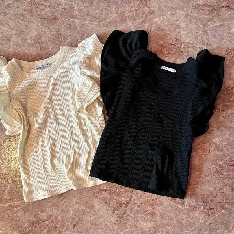 ZARA 프릴 소매 리브 T셔츠 2종 세트