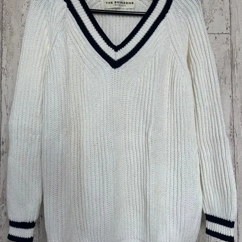 THE SHINZONE 칠드런 니트 V넥 스웨터 화이트/네이비