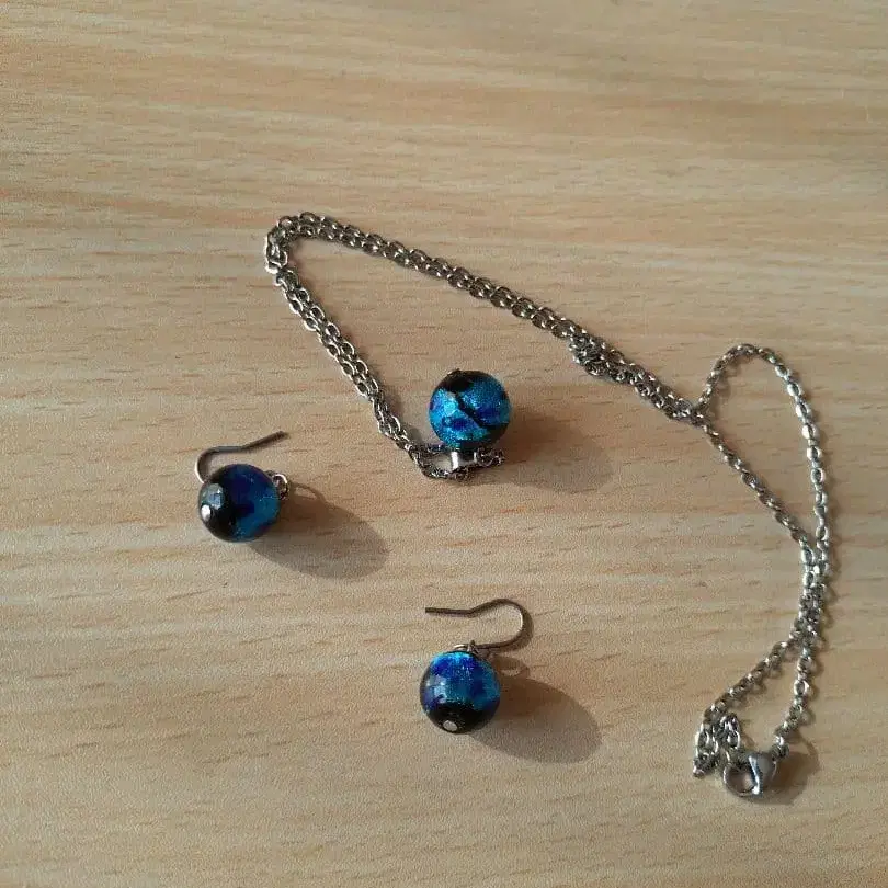 파랑과 블랙 비즈 목걸이와 링 귀걸이 세트