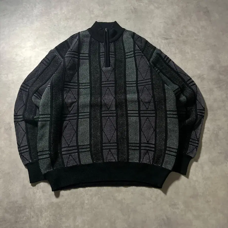 빈티지 하프 지퍼 블랙 흑백 스트라이프 니트 스웨터