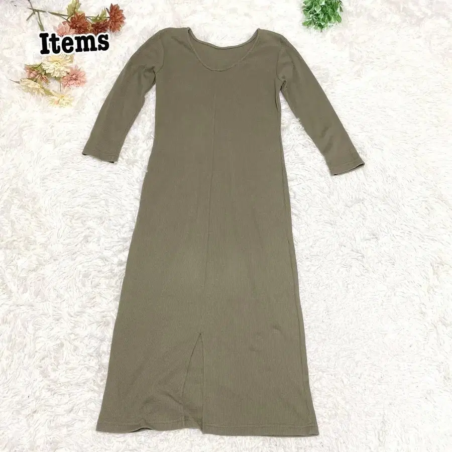 s.1785 [아이템즈] 긴팔 티셔츠 와플 롱 원피스 카키