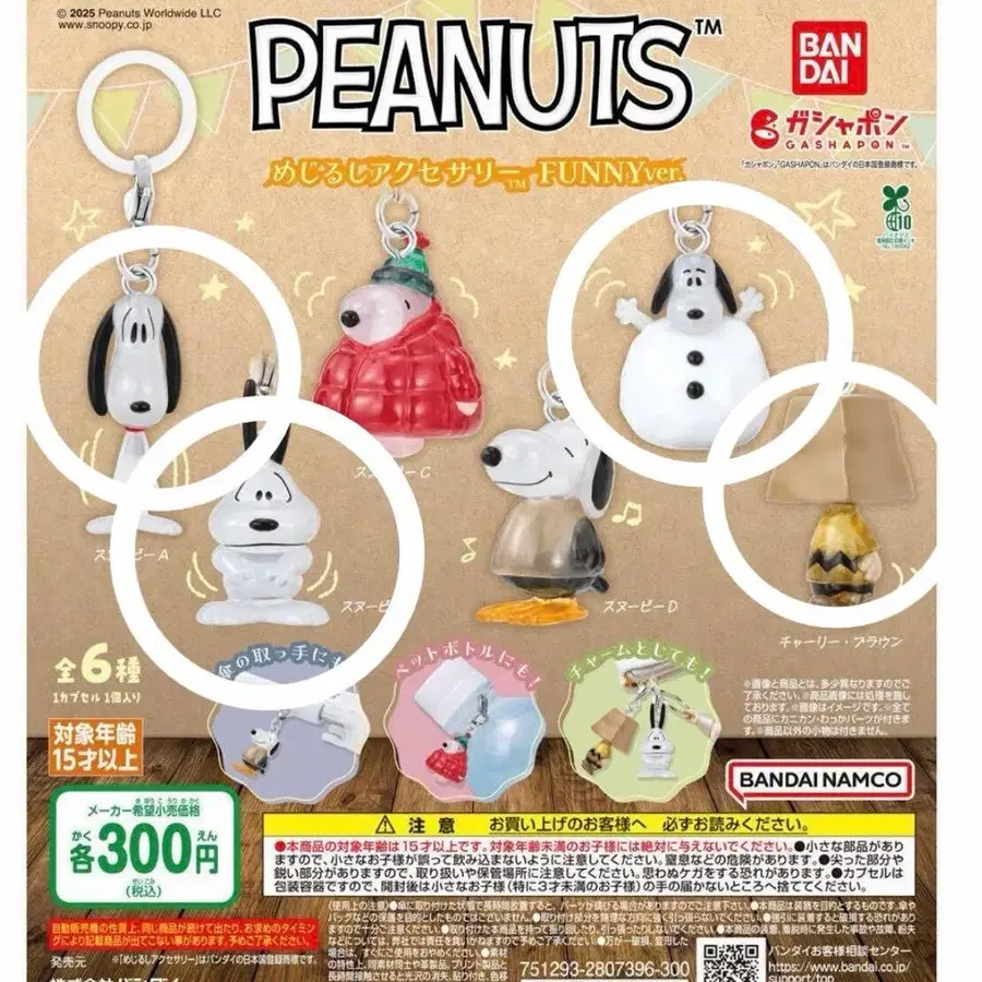 스누피 메지루시 액세서리 5개 세트