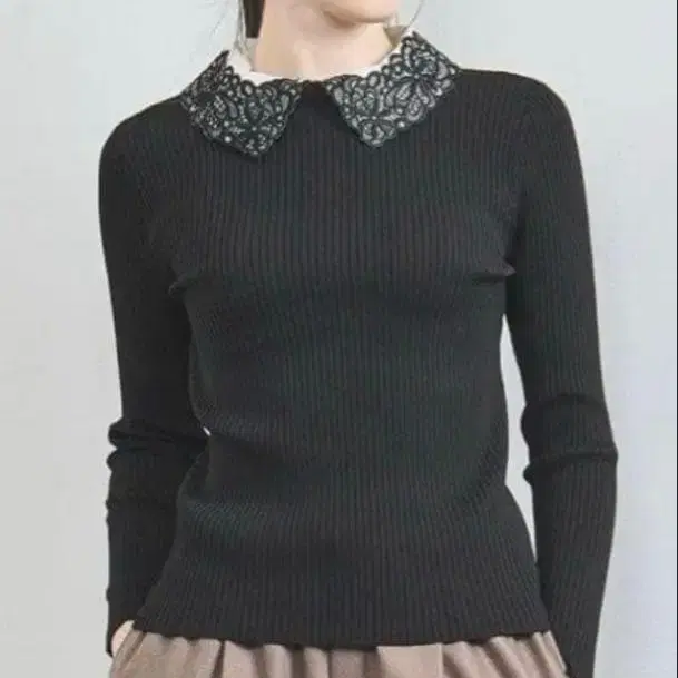 [새상품급] 유나이티드 애로우즈 옷깃 블랙 레이스 긴팔