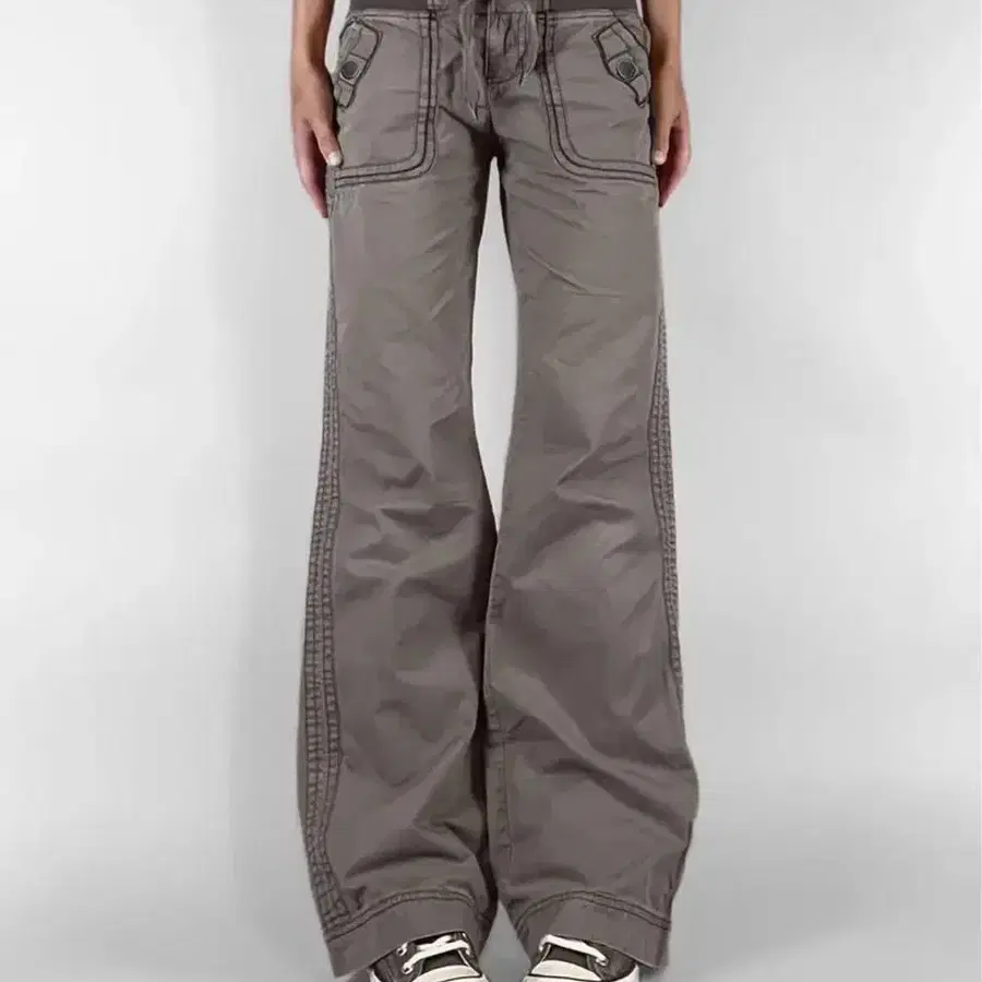 미사용 그레이 플레어 팬츠 캐주얼 여성용 M