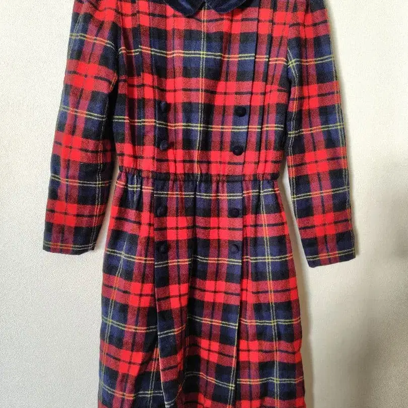 체크 무늬 긴팔 무릎 기장 원피스 M 사이즈