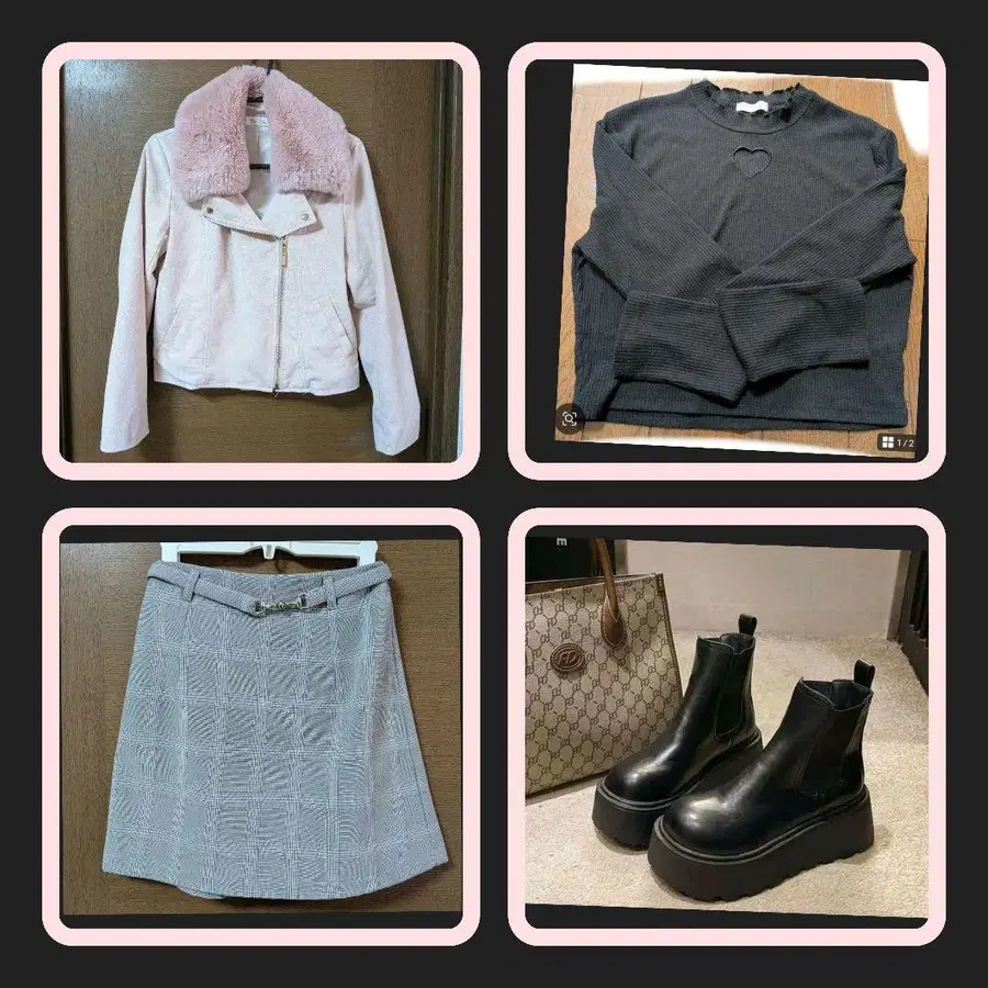 [ 묶음 판매 ] 핑크 퍼 자켓 코디 여성용 의류 4종 세트