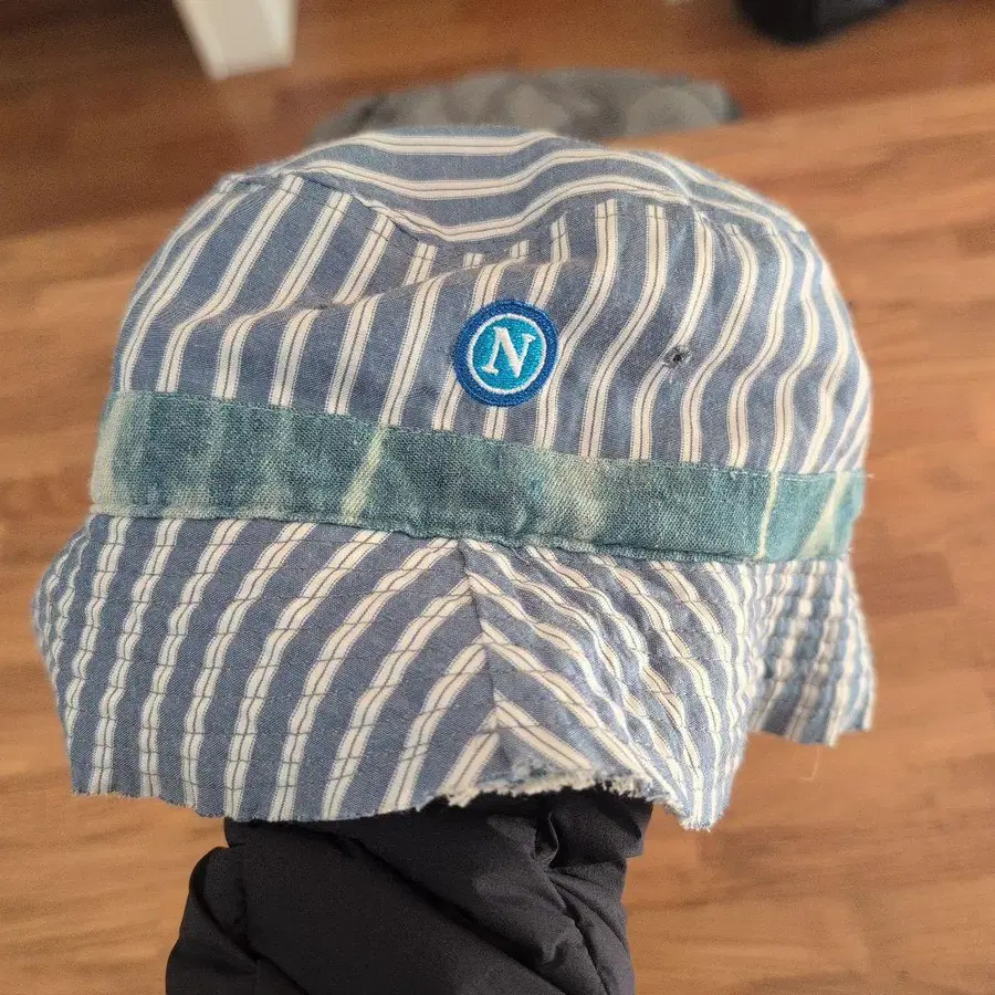 새상품 나폴리 햇 블루 화이트 스트라이프 N 로고 포함