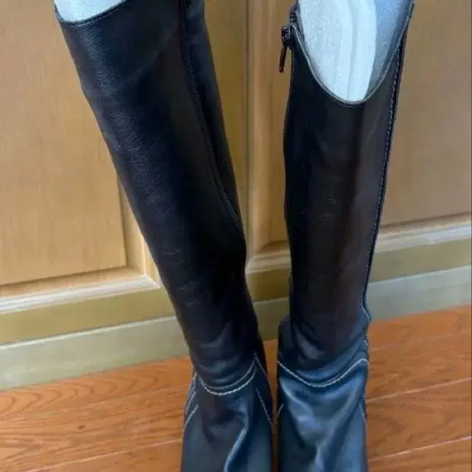블랙 롱 부츠 하이힐 지퍼 포함