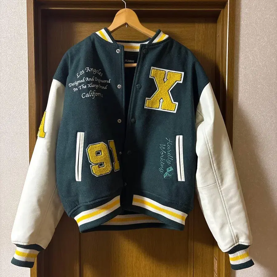XLARGE 바시티 자켓 블랙/화이트 고릴라 로고