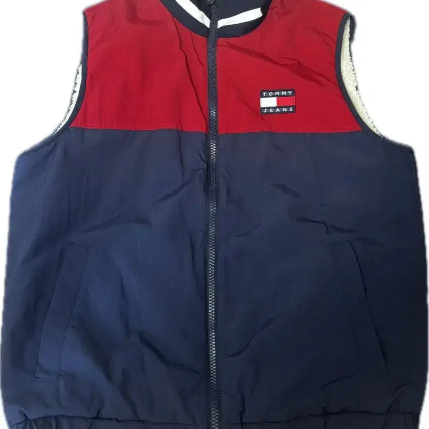 TOMMY 빨간색/네이비 보아 리버서블 지퍼 베스트 XL