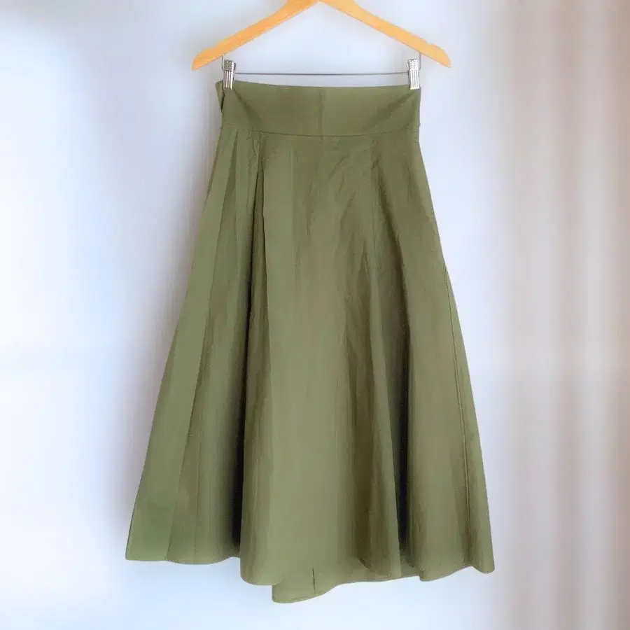 • 애니시스 플레어 스커트 [M] 무릎 아래 기장 벨트 리본 허리밴딩 카키