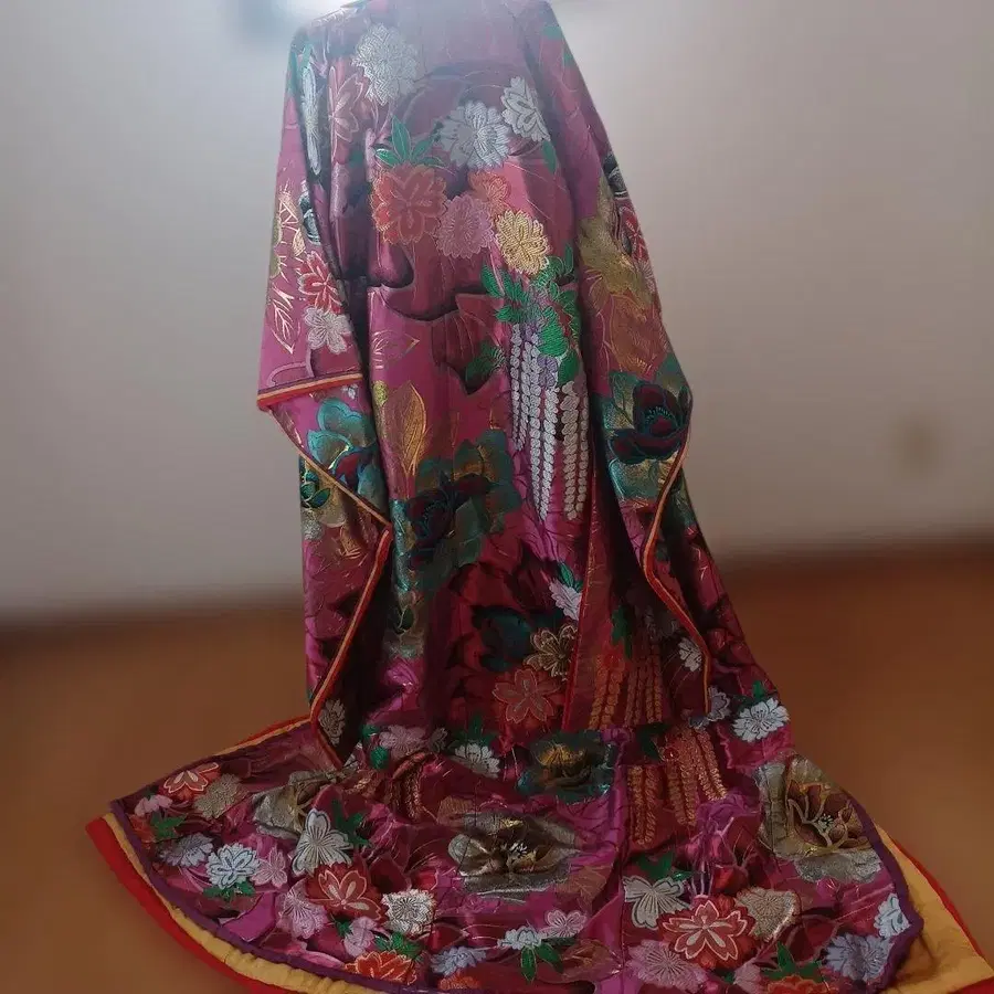 핑크 꽃무늬 금실 자수 이로 우치카케