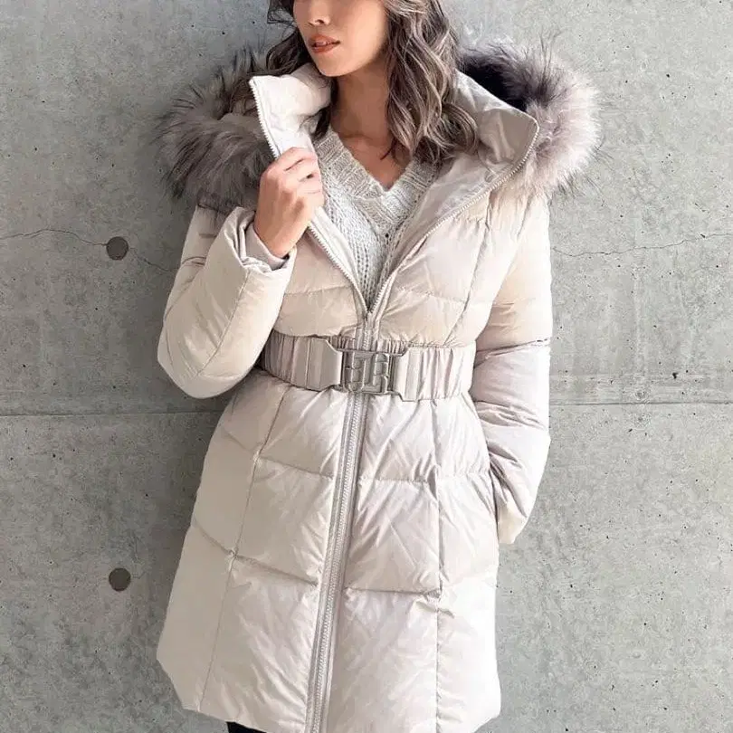 벨트 포함 퍼 다운 코트 [kd13] 그레일