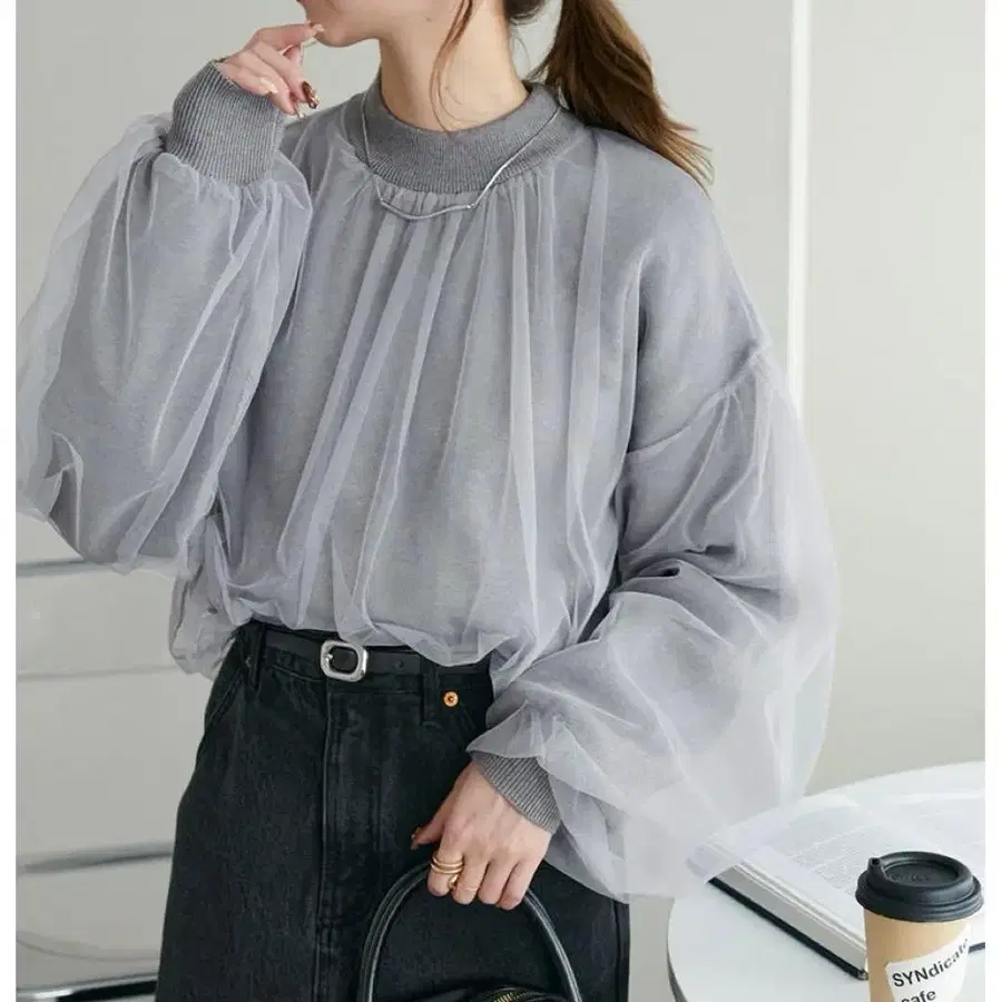 새상품급 Discoat 디스코트(F) 튤 레이어드 니트/그레이