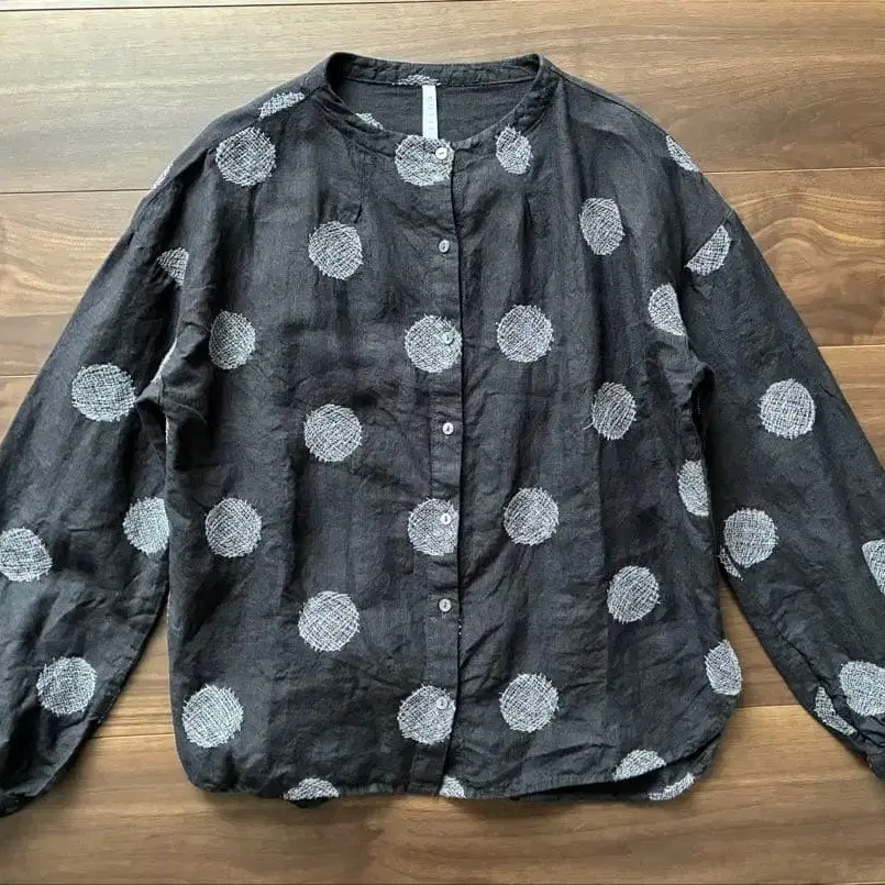 TUTIE. 츠치에 자수 도트 상의 차콜 그레이