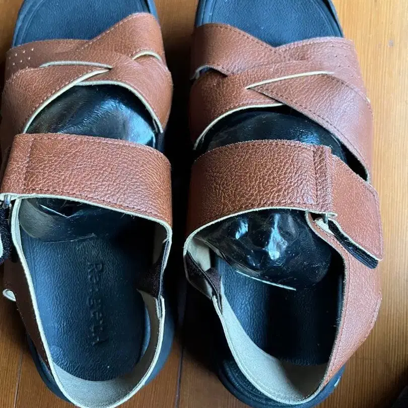브라운 스트랩 샌들 합성 피혁