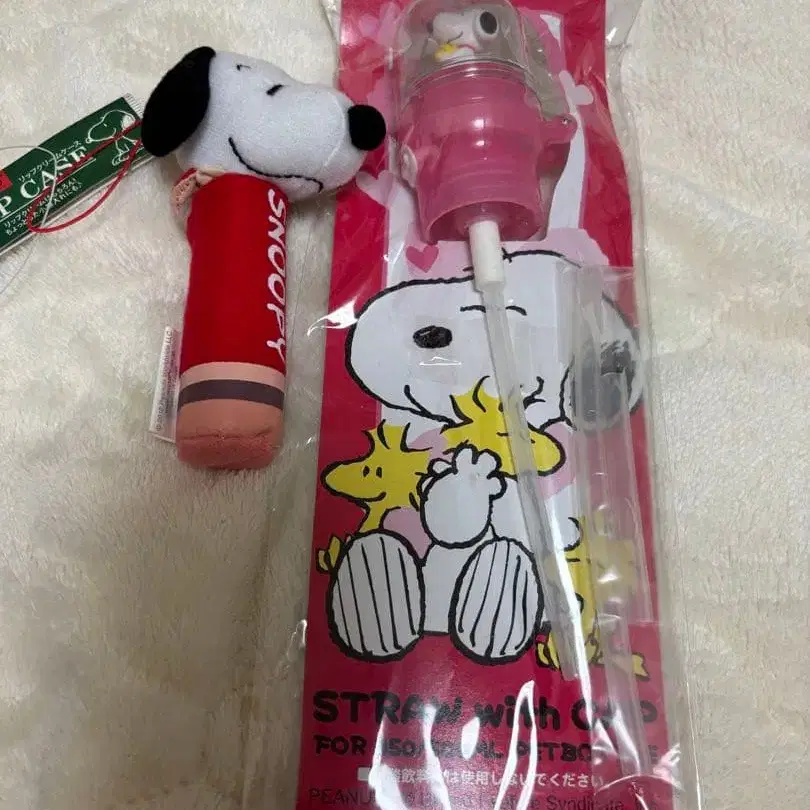 미사용 새상품 SNOOPY 스누피 스트로우 포함 캡과 스누피 립 케이스