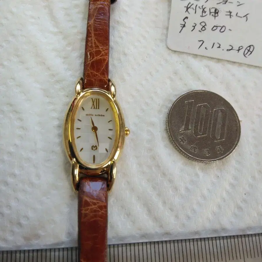밀라 쇤의 브라운 가죽 타원형 손목시계