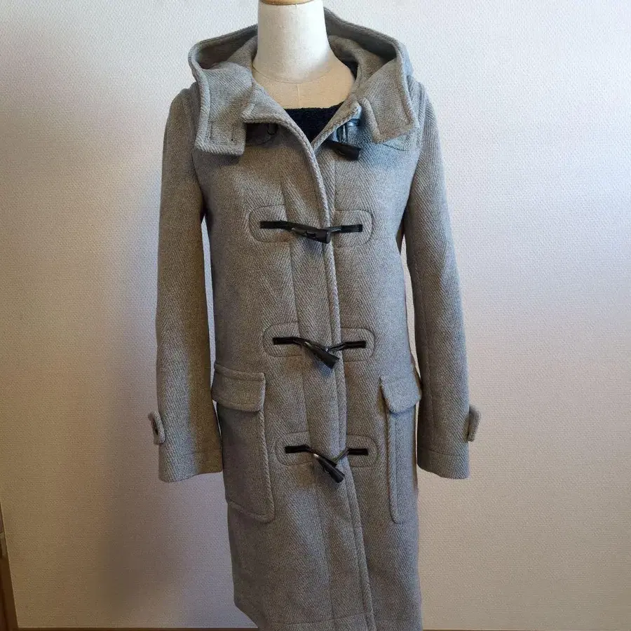 새상품급 23구 그레이 더플 코트 울 혼방 후드 부착