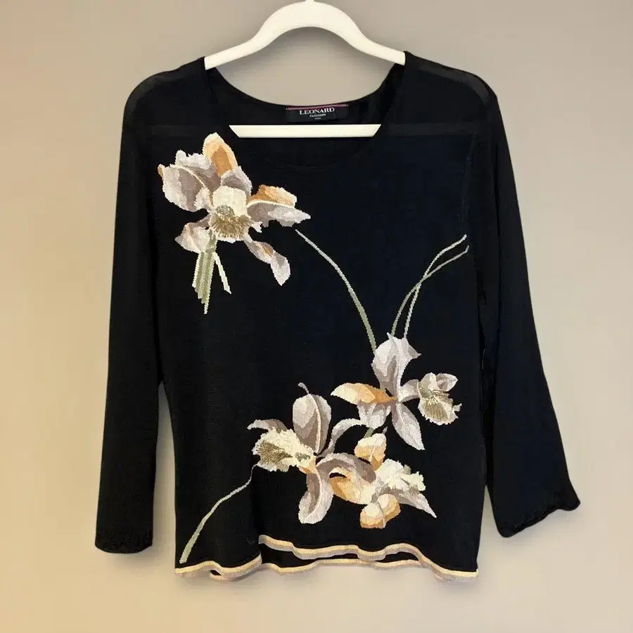 LEONARD 꽃무늬 자수 실크 레이온 소재 7부 소매 상의