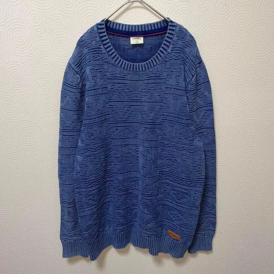 무늬가 있는 파란색 니트 스웨터, L 사이즈.