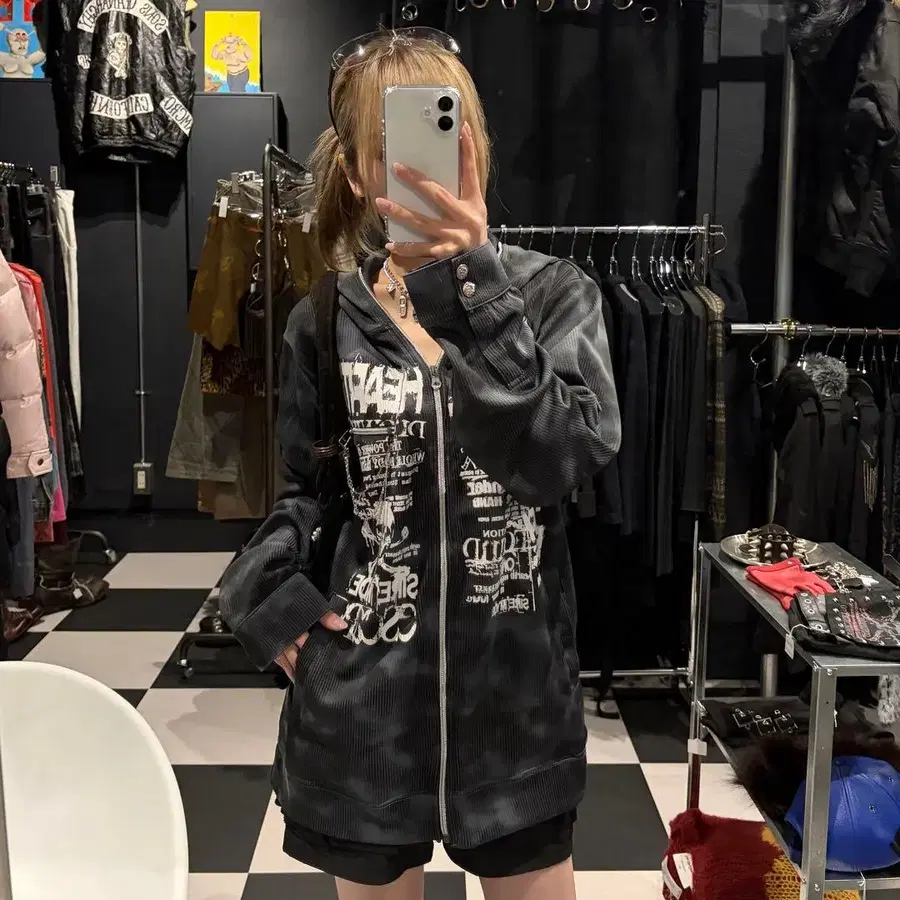 Y2K 그런지 해골 집업 후드티 풀 집업 후드티