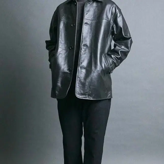 • JIM & MARYLOU 가죽 자켓 카 코트 블랙