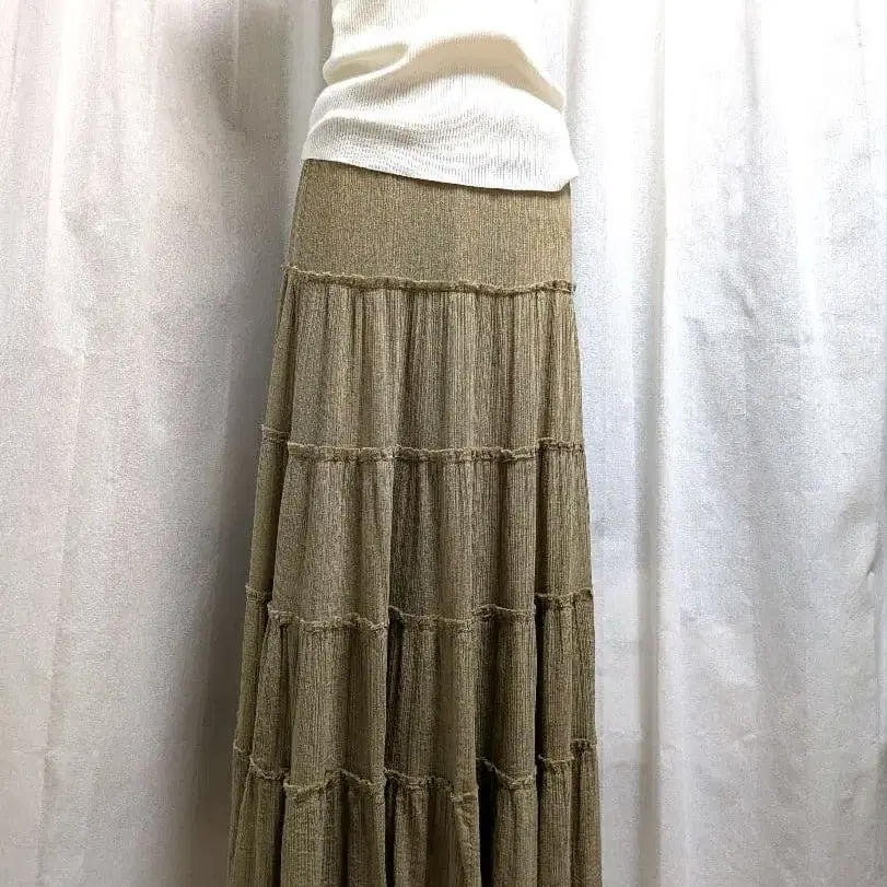 ETRE TOKYO 베이지 코튼 티어드 플레어 스커트