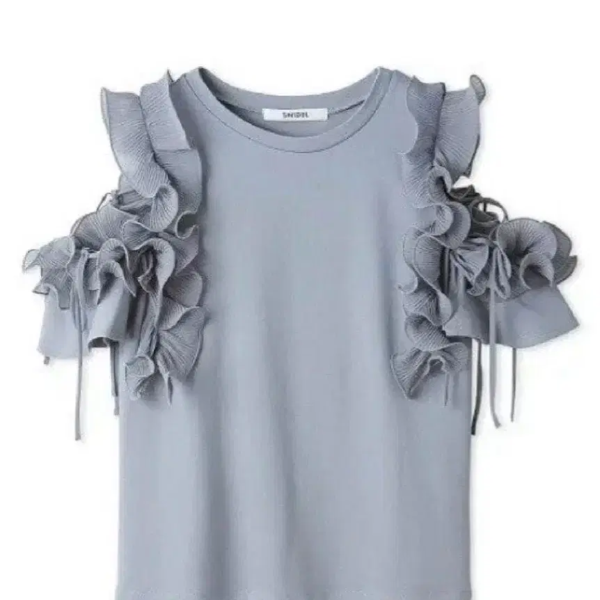 SNIDEL 스나이델 프릴 슬리브 컷 풀오버 블루