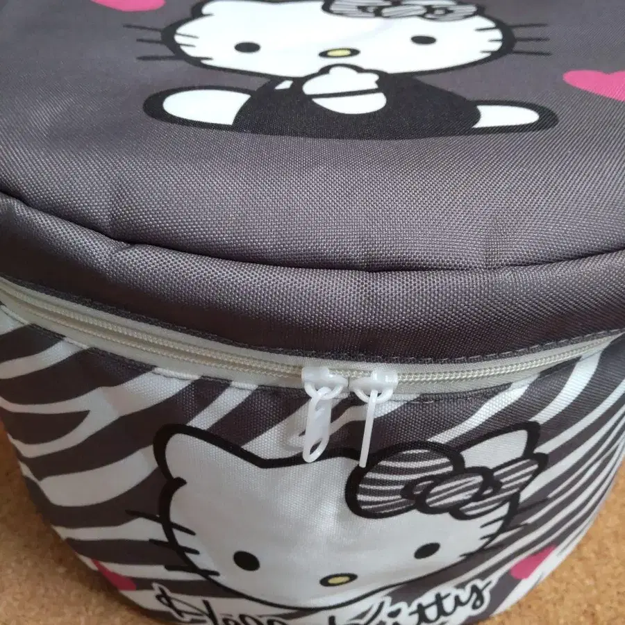 헬로키티 제브라 패턴 원형 뚜껑 수납 박스