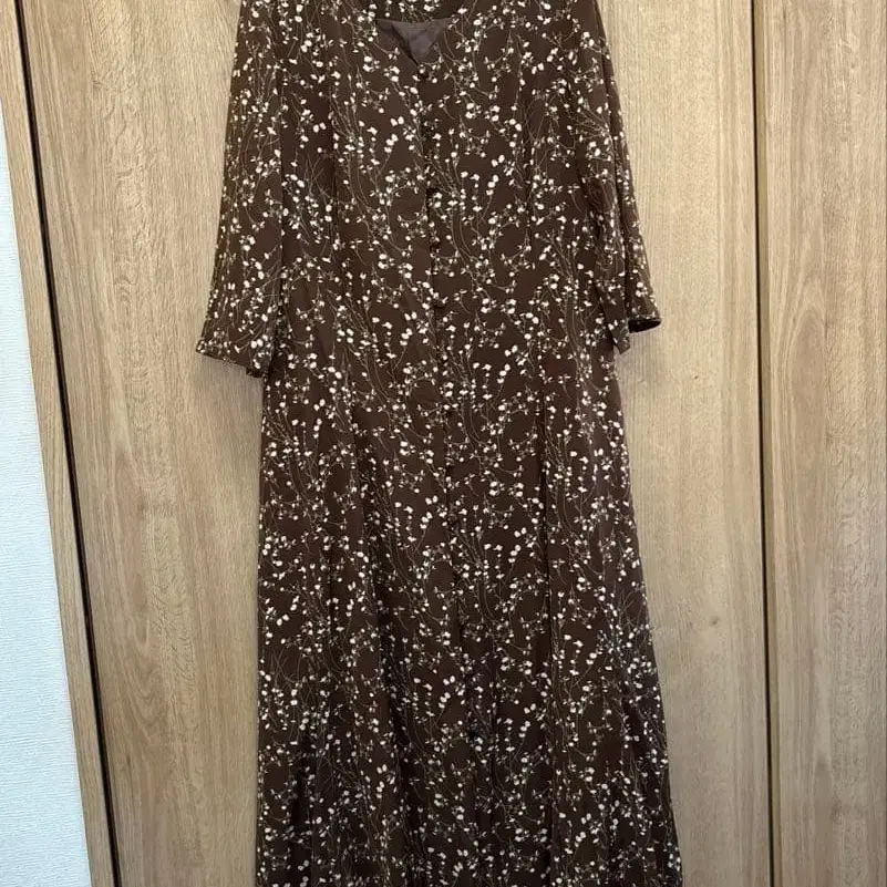 natural couture 브라운 꽃무늬 롱 원피스 7부 소매